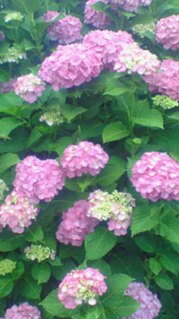 近所の道端や庭では、アジサイがたくさん咲いています。