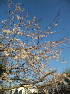 早咲きのものは満開一歩手前でしたが、昨日の強風のせいで花があらかた飛ばされていました(泣)